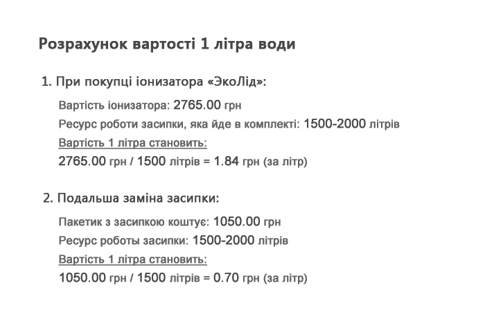 Вираховуємо на основі вартості іонізатора (з засипанням в комплекті) і вартості подальшої заміни засипки.